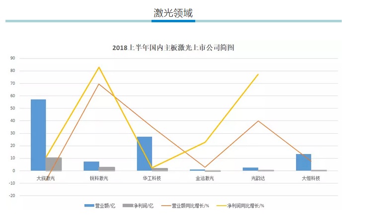從上圖可以看出,大族激光和華工科技繼續(xù)保持激光上市公司營收的第一、二位置,銳科于今年6月正式主板上市,以7.51億元獲得了第四的好成績。