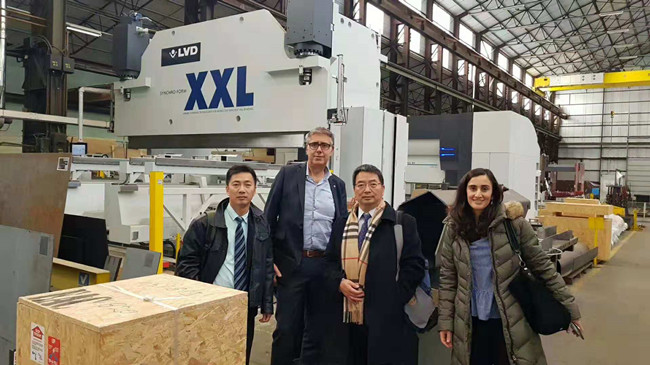 當(dāng)天在Carlos帶領(lǐng)下,邵火先生一行來到比利時知名的從事鈑金、機床與激光切割的企業(yè)—LVD集團,該公司Kurt先生等人負責(zé)接待。據(jù)了解,LVD成立于1952年,最早從事精密折彎機生產(chǎn)。公司在1990年代有顯著的增長,包括1998年收購Strippit公司(史翠柏,一家生產(chǎn)制造轉(zhuǎn)塔沖床的公司)并開始生產(chǎn)激光切割機,使得LVD成為了激光、沖床和折彎技術(shù)的領(lǐng)頭羊。Kurt先生對邵火、Carlos一行表示熱烈歡迎,并希望未來更多與中國合作伙伴開展合作。