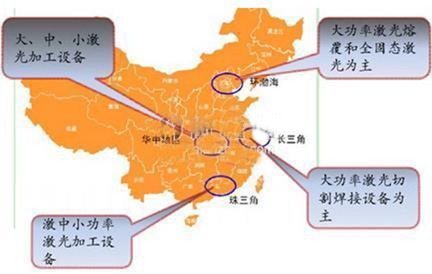 我國(guó)激光企業(yè)具有群體聚集性,主要分布在五個(gè)產(chǎn)業(yè)帶:珠三角、長(zhǎng)三角、華中、環(huán)渤海地區(qū),以及新興的東北工業(yè)振興區(qū)。另外,西部產(chǎn)業(yè)帶也將成形。其中,特別值得一提的是東北工業(yè)區(qū),不少激光企業(yè)發(fā)展勢(shì)頭良好。這五個(gè)產(chǎn)業(yè)帶側(cè)重點(diǎn)不同,珠三角以中小功率激光加工機(jī)為主,長(zhǎng)三角以大功率激光切割焊接設(shè)備為主,環(huán)渤海以大功率激光熔覆和全固態(tài)激光為主,以武漢為首的華中地區(qū)則覆蓋了大、中、小激光加工設(shè)備。
