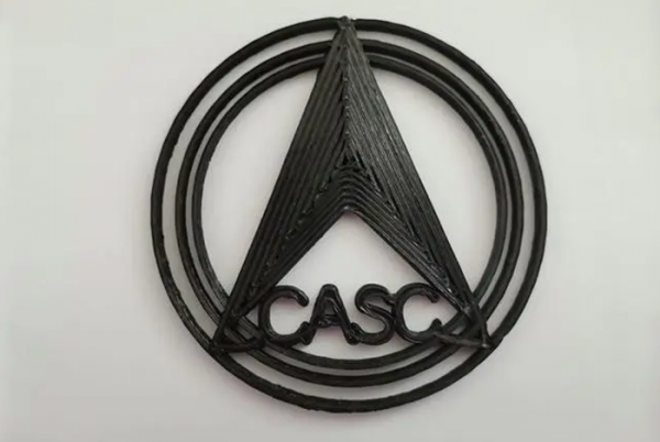 在軌太空3D打印的航天科技集團CASC標(biāo)志,由碳纖維的長絲連續(xù)構(gòu)成