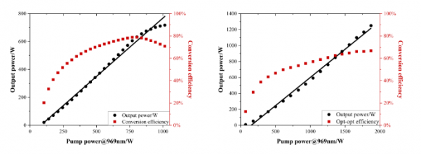 與此同時(shí),學(xué)??蒲泄ぷ鱾鱽砹诵碌南灿?。近日,深圳技術(shù)大學(xué)阮雙琛教授牽頭的國家重點(diǎn)研發(fā)項(xiàng)目團(tuán)隊(duì)在科技部國家重點(diǎn)研發(fā)計(jì)劃“晶體薄片加工及新一代增益器件制備”項(xiàng)目支持下,針對(duì)晶體薄片加工及新一代增益器件制備中的關(guān)鍵科學(xué)問題取得重要研究進(jìn)展,在國內(nèi)率先實(shí)現(xiàn)了直徑>20mm Yb:YAG薄片晶體封裝,并設(shè)計(jì)了千瓦級(jí)48沖程泵浦系統(tǒng)。 ▲ 自主研發(fā)的Yb:YAG薄片晶體(直徑>20mm) ▲ 千瓦級(jí)48沖程泵浦系統(tǒng) 高功率超快激光器應(yīng)用于先進(jìn)制造、信息、微電子、醫(yī)療、能源、軍事等領(lǐng)域,相關(guān)科技應(yīng)用研究對(duì)推進(jìn)國家戰(zhàn)略發(fā)展至關(guān)重要。激光增益器件是高功率超快激光器的核心基礎(chǔ)材料,受到世界各國的高度關(guān)注。薄片激光器以其極佳的光束質(zhì)量和高效的光-光轉(zhuǎn)換效率在工業(yè)制造業(yè)和基礎(chǔ)科學(xué)研究等眾多領(lǐng)域中得到了日益廣泛的應(yīng)用。但目前我國薄片晶體精密加工、熱沉系統(tǒng)的設(shè)計(jì)和封裝、增益器件的制備等關(guān)鍵核心技術(shù)不足,嚴(yán)重限制了我國高功率薄片激光器的進(jìn)一步發(fā)展。 深圳技術(shù)大學(xué)依托廣東省高校先進(jìn)光學(xué)精密制造技術(shù)重點(diǎn)實(shí)驗(yàn)室、深圳市激光工程重點(diǎn)實(shí)驗(yàn)室、中德智能制造學(xué)院、工程物理學(xué)院等單位,從2021年開始開展薄片激光技術(shù)的攻關(guān),于2022年初采用自研直徑12mm的薄片晶體和再生放大技術(shù),通過對(duì)高功率再生放大諧振腔的色散補(bǔ)償及非線性效應(yīng)控制,實(shí)現(xiàn)了單脈沖能量>500μJ、脈沖寬度<7.5ps、平均功率>200W的激光輸出,尤其是光束質(zhì)量M2<1.1、光-光轉(zhuǎn)換效率>50%的優(yōu)良性能,為腔外高效非線性頻率變換打下了堅(jiān)實(shí)基礎(chǔ)。 項(xiàng)目團(tuán)隊(duì)采用鎖定波長的969nm“零聲子線”泵浦,實(shí)現(xiàn)了最高連續(xù)輸出功率>1300W,最大光-光轉(zhuǎn)化效率接近80%,其優(yōu)異性能為千瓦級(jí)平均功率以及百毫焦的超快薄片激光器研究奠定了重要基礎(chǔ)。 (a)1000W@969nm泵浦 (b)2000W@969nm泵浦 通過科技部重點(diǎn)研發(fā)項(xiàng)目牽引,項(xiàng)目團(tuán)隊(duì)以國家產(chǎn)業(yè)安全和重大工程建設(shè)需求為導(dǎo)向,突破大功率激光材料與器件應(yīng)用關(guān)鍵核心技術(shù),打通創(chuàng)新鏈,突破戰(zhàn)略性大功率激光晶體制備與應(yīng)用各環(huán)節(jié)的共性關(guān)鍵技術(shù),提高我國信息、能源、交通、高端裝備等領(lǐng)域核心激光晶體材料和器件的自主可控能力,服務(wù)新能源、3C電子、高端制造等高新技術(shù)產(chǎn)業(yè)發(fā)展。
