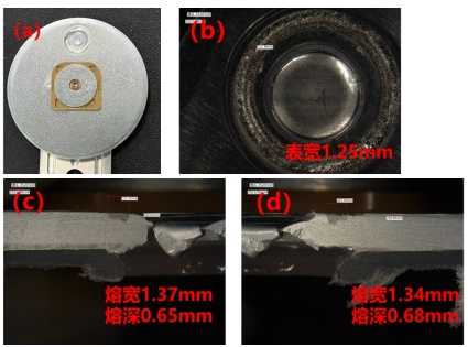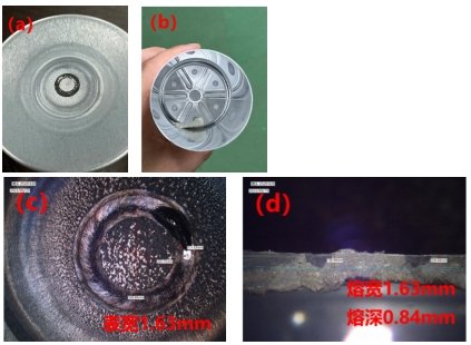 旗幟系列單模環(huán)形激光器RFL-1000/1000-SM-ABP-R也能應用于防爆閥的焊接,如圖7所示。相比于大芯徑激光器,熔深熔寬難以精準控制,而采用單模環(huán)形激光器,熱輸入與熱影響區(qū)較小,能夠更容易得到合適的焊接效果,且焊接效率高,焊接時間為0.145s左右。