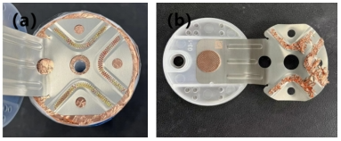 圖5正集流盤 (a)表面形貌(b)背面殘留