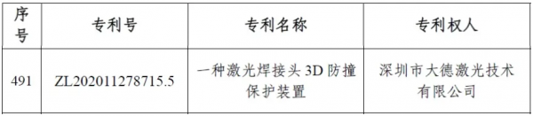 近日,國家知識(shí)產(chǎn)權(quán)局對第二十五屆中國專利獎(jiǎng)評審結(jié)果進(jìn)行了公示。深圳市大德激光技術(shù)有限公司榮獲中國專利優(yōu)秀獎(jiǎng)。