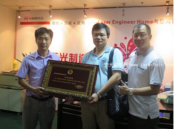 廣東省激光行業(yè)協(xié)會(huì)秘書長邵火(左一)為新光源領(lǐng)導(dǎo)頒牌