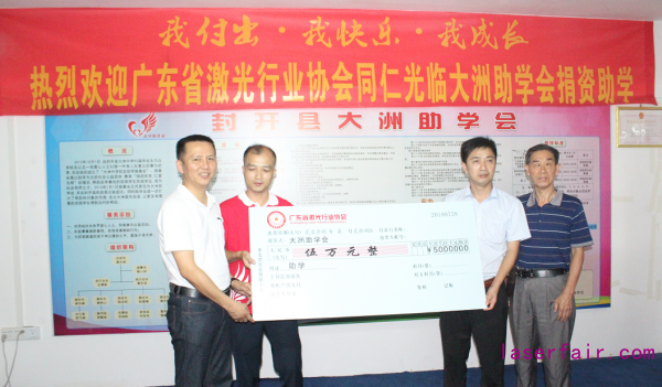 2018年7月,在廣東省激光行業(yè)協(xié)會的牽頭引領(lǐng)下,不到3天的時間內(nèi),協(xié)會會員單位熱心支持,順利完成了捐助50000元扶貧助學資金的創(chuàng)舉。7月28-29日,以捐助單位和個人為組織的扶貧小組在協(xié)會秘書長邵火帶領(lǐng)下,前往廣東省封開縣大洲鎮(zhèn)大洲中學92屆畢業(yè)生與歷屆校友一起成立的“大洲助學慈善會”對接,共同開展扶貧助學活動,實現(xiàn)精準扶貧助學,把現(xiàn)金與實物送到了每個貧困學生家中,解決了一些家庭的然眉之急,并進行了座談走訪,為下一步的精準扶貧打下了扎實的基礎(chǔ)。