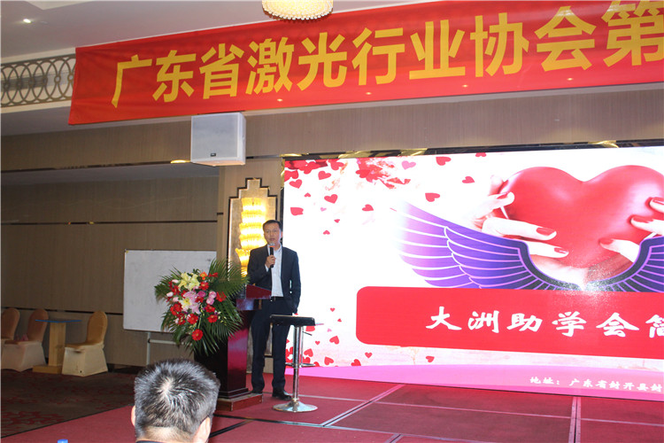 廣州海目星激光總經(jīng)理聶水斌為在座參會(huì)人員介紹了大洲助學(xué)會(huì)的發(fā)展概況。他講述了自身下鄉(xiāng)的親身體驗(yàn),認(rèn)為企業(yè)要回饋社會(huì),他自己參與的這個(gè)助學(xué)會(huì)經(jīng)過幾年的努力,現(xiàn)在已經(jīng)幫助了許許多多山區(qū)孩子完成了讀書夢(mèng)。