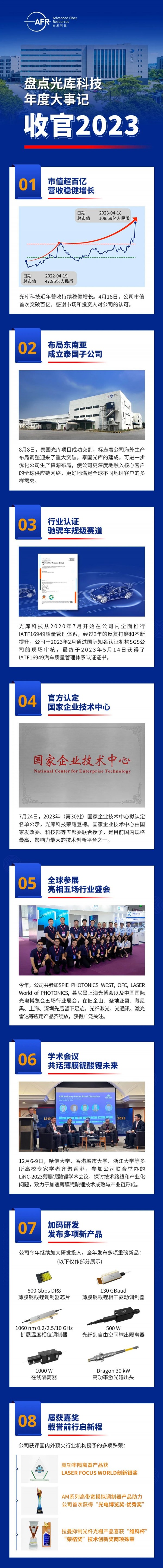 春華秋實(shí),碩果累累。2023年,光越科技在產(chǎn)品研發(fā)方面取得了顯著的突破。我們持續(xù)投入大量資源,致力于提升產(chǎn)品的性能和品質(zhì)。經(jīng)過團(tuán)隊(duì)的不懈努力,我們成功推出了:3D打印QCS、信號合束器模塊、合束器+光纖光柵一體化器件、小體積百瓦在線隔離器、超快集成器件、激光雷達(dá)發(fā)射模塊、半導(dǎo)體脈沖種子源、窄線寬半導(dǎo)體激光器、聲光調(diào)制器、一體化QBH、一體化Q+,準(zhǔn)直器+合束器一體化器件等多款領(lǐng)先行業(yè)的新產(chǎn)品,涵蓋了光通信、激光雷達(dá)、醫(yī)療設(shè)備等多個領(lǐng)域。