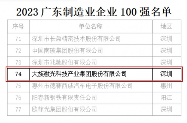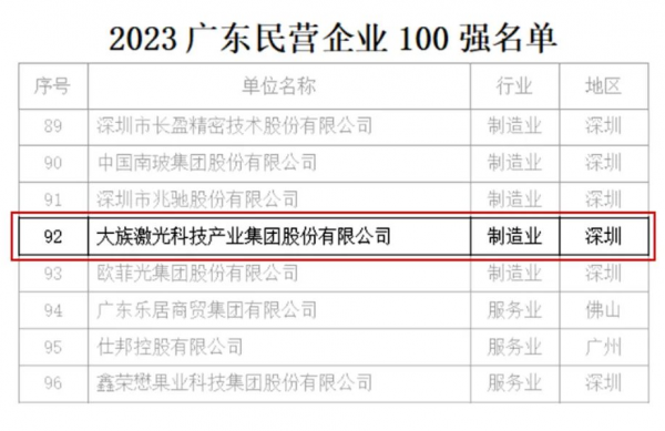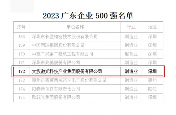 2023廣東500強(qiáng)企業(yè)公布 大族激光登榜