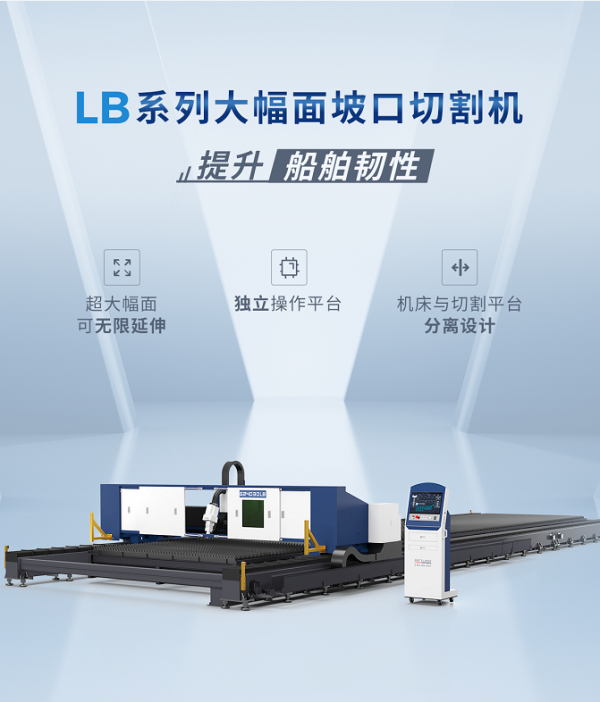 大國(guó)船舶 強(qiáng)鏈制造 滬東中華造船(集團(tuán))有限公司是中國(guó)船舶工業(yè)集團(tuán)公司旗下的骨干核心企業(yè),是集合造船、海洋工程、非船三大業(yè)務(wù)板塊為一體的綜合性產(chǎn)業(yè)集團(tuán),具有70多年的造船歷史和豐富的造船經(jīng)驗(yàn),為國(guó)內(nèi)外船東建造過(guò)LNG船、LPG船、大中型集裝箱船、化學(xué)品船、滾裝船、油船、散貨船、客貨船、特種工作船、軍艦和軍輔船等各類(lèi)船舶3000多艘。 此次簽約的大族LB系列38mx5m超大幅面坡口切割機(jī),可同時(shí)用于加工大尺寸平板和坡口,雙擺動(dòng)軸坡口機(jī)構(gòu),實(shí)現(xiàn)0~±45°內(nèi)任意切割V坡、A坡、Y坡、X坡、K坡、漸變坡等坡口,斷面質(zhì)量高,彌補(bǔ)了火焰切割與等離子切割等傳統(tǒng)加工模式中割縫寬、切割精度差的缺陷,更能確保船舶構(gòu)件強(qiáng)度,保證船舶制造質(zhì)量;加工速度快,生產(chǎn)效率高,可大大縮短船舶建造周期,助力滬東中華船舶制造提質(zhì)增效。 LB系列線軌大幅面坡口切割機(jī),是中國(guó)船舶工業(yè)行業(yè)協(xié)會(huì)的“強(qiáng)鏈品牌”產(chǎn)品,已廣泛應(yīng)用于船舶工業(yè),成為推動(dòng)船舶制造升級(jí)的中堅(jiān)力量之一。