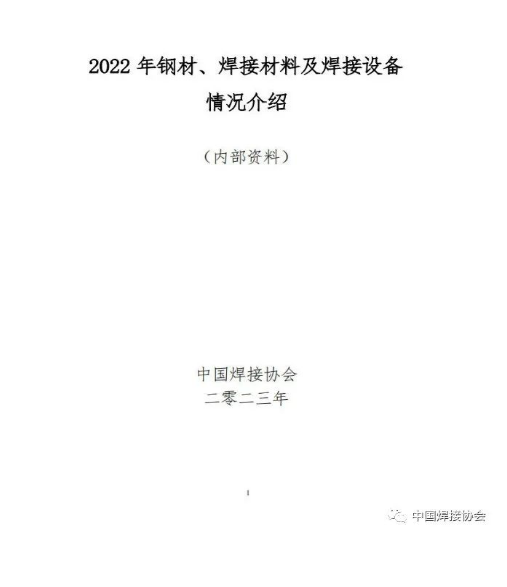 中國焊接協(xié)會最新發(fā)布《2022年鋼材、焊接材料及焊接設(shè)備情況介紹》