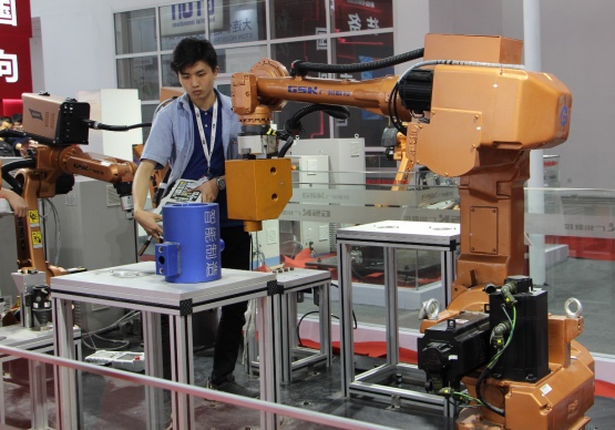 工業(yè)機(jī)器人和機(jī)床的結(jié)合已經(jīng)成為一個(gè)重要的方向,機(jī)器人幫助機(jī)床上下料,提升機(jī)床加工的柔性化效果。本次展會(huì)上,廣州數(shù)控展出了工業(yè)機(jī)器人智能制造解決方案,多臺(tái)機(jī)器人相互協(xié)助完成工件的制造過程。