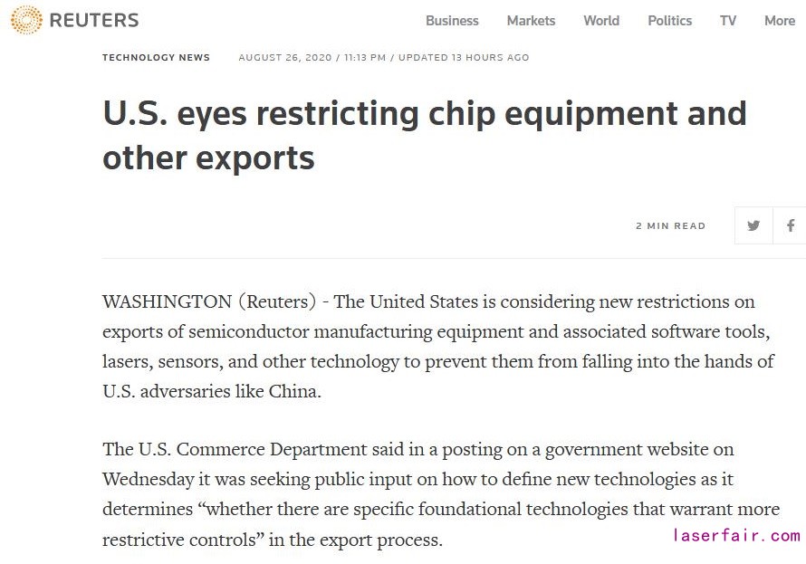 美國(guó)擬限制半導(dǎo)體設(shè)備、激光器、軟件和其他技術(shù)對(duì)華出口