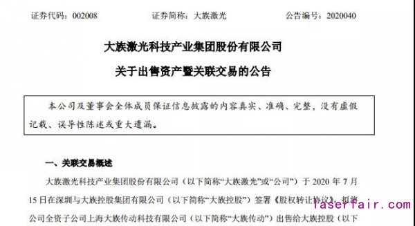 大族激光擬10.3億元出售大族傳動(dòng) 剝離歐洲研發(fā)運(yùn)營中心相關(guān)資產(chǎn)