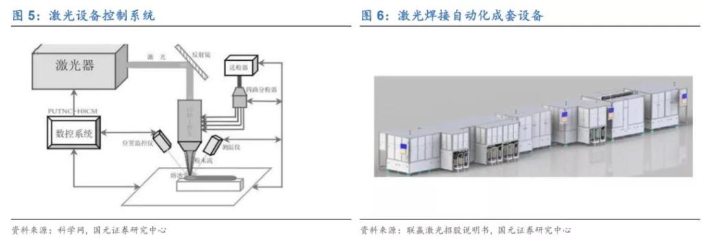 激光器為激光設(shè)備核心部件,以聯(lián)贏激光激光焊接設(shè)備為例,激光焊接機由激光器和焊接頭組成,工作臺由移動平臺和運動控制系統(tǒng)組成。根據(jù)下游客戶需求,將加載了自動化系統(tǒng)軟件、應(yīng)用環(huán)境設(shè)計的激光焊接機、工作臺共同組成的自動化成套設(shè)備為下游主要銷售形式。