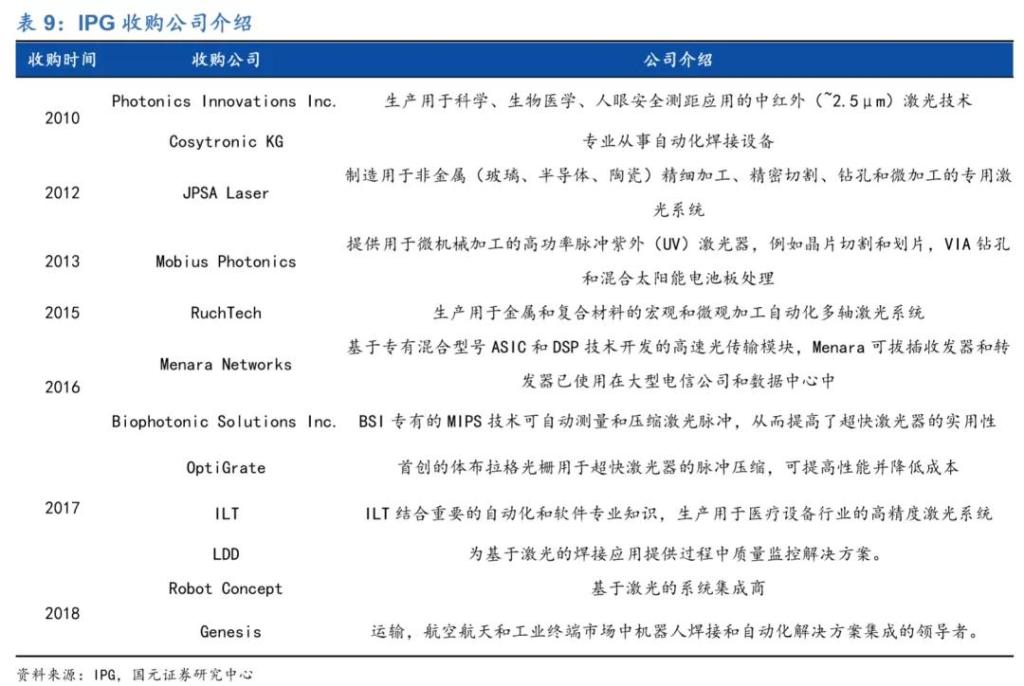 3.1 從激光器龍頭 IPG 看行業(yè)發(fā)展模式,研發(fā)并購為發(fā)展主調(diào)