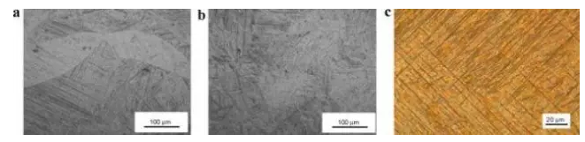 圖3.2 FZ的組織:(a)0.8kW,17mm / s,(b)1 kW,50mm / s, (c)是b中的馬氏體結(jié)構(gòu)