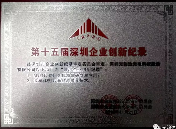 新紀(jì)錄項(xiàng)目?jī)?nèi)容:深圳光韻達(dá)光電科技股份有限公司于2016年進(jìn)行3D打印專用金屬粉體材料的研制與應(yīng)用。根據(jù)國(guó)內(nèi)對(duì)金屬3D打印材料的需求,針對(duì)不銹鋼、模具鋼、鈦合金、鋁合金等國(guó)內(nèi)需求量大的材料,結(jié)合廣東有色金屬研究進(jìn)行高品質(zhì)粉體制備及應(yīng)用推廣。結(jié)合粉體的制備、加工工藝測(cè)試、實(shí)際應(yīng)用推廣,完善省內(nèi)金屬3D打印產(chǎn)業(yè)鏈,填補(bǔ)高端金屬粉末的缺口,本項(xiàng)目將有利于降低金屬3D打印成本,推動(dòng)該技術(shù)的發(fā)展。
