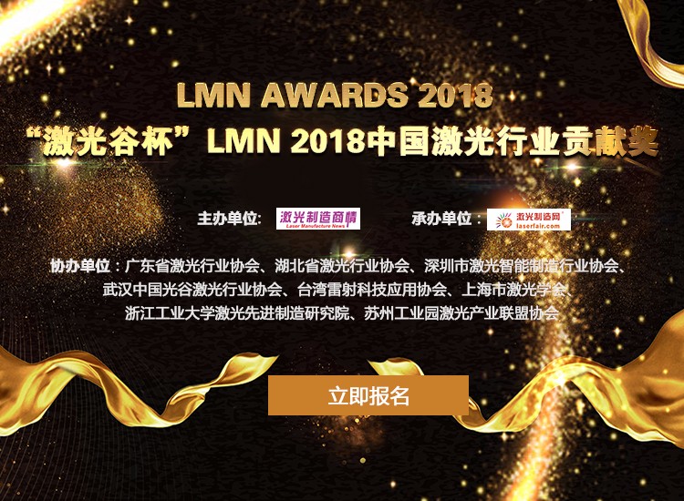 由《激光制造商情》(LMN)主辦、激光制造網(wǎng)承辦,各地激光協(xié)會聯(lián)合協(xié)辦的年度超大型激光評選活動“2018中國激光行業(yè)貢獻獎”目前已正式在全國范圍內(nèi)啟動。本次活動于2018年1月初啟動參賽報名,截止2月10日報名,然后進行公開投票,3月中旬將公布決賽入圍名單,5月《激光制造商情》將于深圳舉辦“2018中國激光行業(yè)貢獻獎”頒獎盛典。