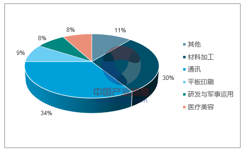 激光器用途十分廣泛,目前主要應(yīng)用于通信、材料加工、印刷、軍事研發(fā)、醫(yī)療美容等領(lǐng)域。根據(jù)數(shù)據(jù),2016年, 全球激光器行業(yè)應(yīng)用領(lǐng)域中材料加工相關(guān)的激光器收入 31.20億美元,占全球激光器收入的 30%,為僅次于通訊的第二大激光器應(yīng)用領(lǐng)域;研發(fā)與軍事運用相關(guān)激光器收入 8.32 億美元,占全球激光器收入的 8%;醫(yī)療美容相關(guān)激光器收入 8.32 億美元,占全球激光器的 8%。具體情況如下: