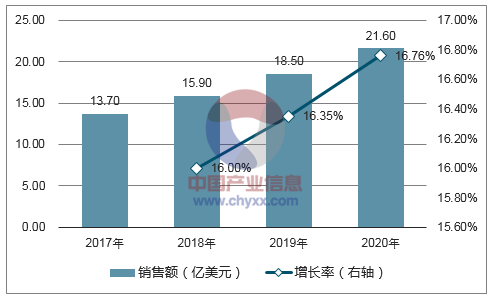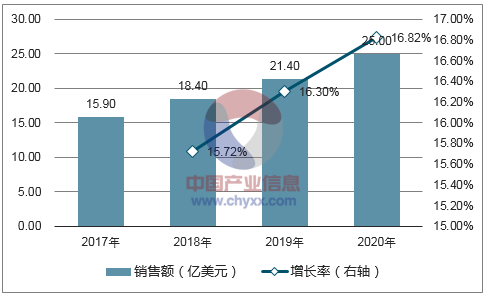 與其他激光器相比,光纖激光器具有轉(zhuǎn)換效率高、光束質(zhì)量好、體積小巧等優(yōu)勢。近年來,隨著光纖激光技術(shù)的發(fā)展和下游行業(yè)需求的增加,光纖激光器市場規(guī)模保持快速增長。傳統(tǒng)制造、汽車生產(chǎn)、重工制造等行業(yè)正越來越多的使用光纖激光器;同時,醫(yī)療美容、通信和航空航天領(lǐng)域也開始使用光纖激光器。根據(jù)預(yù)測,全球光纖激光器的銷售額將由 2017年的 15.90 億美元增加到 2020 年的 25.00 億美元,年復(fù)合增長率為 16.28%。